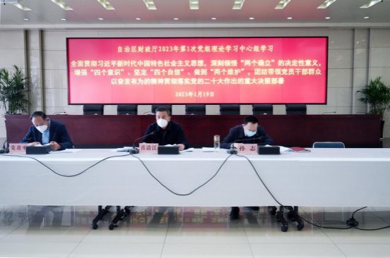 财政厅党组召开理论学习中心组学习会 1月19日,财政厅党组理论学习中心组以“全面贯彻习近平新时代中国特色社会主义思想,深刻领悟“两个确立”的决定性意义,增强“四个意识”、坚定“四个自信”、...